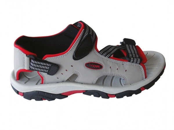 The Cape Sandalet. The Cape Sandalet. Ergonomik dizaynı ile sıcak yaz günlerinde konforlu yürüyüş sağlar. Hafif ve dayanıklı tabanı, phylon poliüretan ve lastikten imal edilmiştir. Üst kısmı özel astarlı nubuktur. Üç ayrı noktadan cırt ile ayarlama yapılabilmesi ayağa tam oturmasına imkan verir. Gri nubuk üzerine renkli kenar fitilleri ile üç farklı renge sahiptir.
