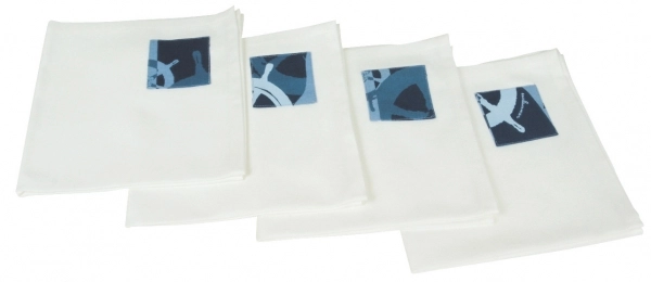 Topoplastic Auckland serisi peçete. 4 farklı tasarımlı set. Pamuklu kumaş. 30 °C’de yıkanabilir. 40x40 cm.