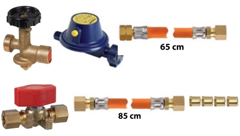 Tüpgaz kiti. ISO 10239 gereklerini karşılar. CE onaylıdır. Tüpgaz kiti. ISO 10239 gereklerini karşılar. CE onaylıdır. 30 mbar dedantör, 65 ve 85cm boylarında iki adet hortum ve düşük basınca uygun vanadan oluşur. 65 cm hortum, dedantör ile teknede döşenmiş olması gereken Ø 8 mm bakır boru arasına konumlandırılır. Bakır borunun kuzinedeki diğer ucuna vana, vanaya da fırın veya ocağa gidecek 85 cm boyundaki hortum takılır.