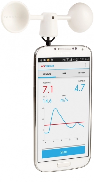 Vaavud Mjolnir anemometre, ücretsiz Vaavud aplikasyonu sayesinde akıllı telefonunuzu ileri teknoloji meteorolojik bir alet haline getirir.