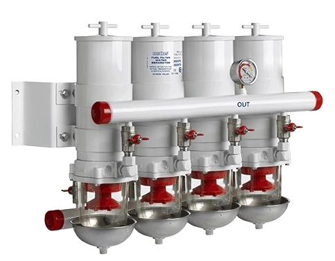 Vetus 3 Santrafüjlü, elemanı değiştirilebilir filtreler. Yüksek güç üreten motorlar için geliştirilmiştir. CE, ABYC ve SOLAS (IMO) sertifikaları bulunur ve ticari teknelerde de kullanılabilirler. Şeffaf çanak yapıları ile sertifika gereği olan yangın testlerinde başarılı olmuşlardır. Bu modüler sistem, 5000 HP güce kadar olan motorlara 2-6 adet arası uygulanabilir. Giriş ve çıkış bağlantıları aynı veya aksi yönde olmak üzere ayarlanabilir. Gerekli kapasitenin hesaplanmasında bir adet filtre yedek olarak göz önüne alınmalıdır. Böylece çiftli filtrelerde bir adet filtre kullanılırken 1 adet de yedekte bulundurulur. 6 filtreli bir uygulamada 5 filtre aktif olarak kullanılırken 1 adet yedekte bulundurulmuş olur. Standart olarak bir vakum göstergesi ile birlikte sunulur. Gösterge, sarı bölgeyi (-0.2 ile -0.35 kg/cm² ) gösterdiğinde filtre elemanının değişmesi gereklidir. Standart filtre 30 mikrondur. İsteğe bağlı olarak 10 mikron filtre elemanı da mevcuttur. Bu filtrelerin tümü patentli yakıt akış sistemine sahiptir. Yakıt, filtrenin üst kısmından tabanına doğru, aynı zamanda da dışarıdan içe doğru santrafüj türbinden geçer ve böylece mümkün olan en etkili ve uzun ömürlü filtreleme sağlanır.