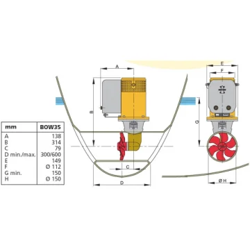 Vetus baş manevra pervanesi, 35 kgf, 12V