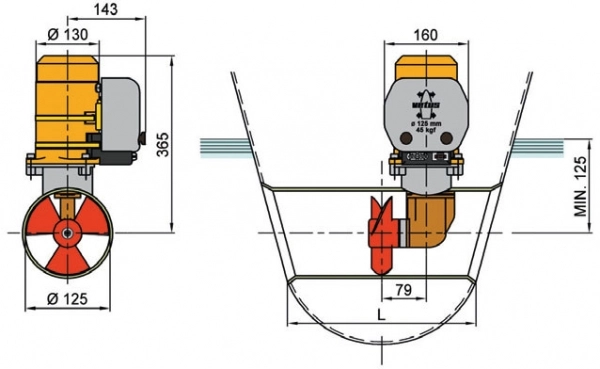 Vetus baş manevra pervaneleri Vetus baş manevra pervanesi, 45 kgf, 12V