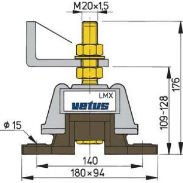 Vetus esnek motor takozu. Tip LMX. Vetus esnek motor takozu. Tip LMX210. Ağır, 4 ve üzeri silindirli motorlara uygulanabilir. Dikey ve yanal vibrasyonu mükemmel absorbe eder.