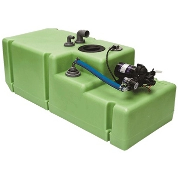 Dakikada 13,2 L – 3,1 bar basınç kontrollü Vetus hidrofora sahip, yüksek kaliteli, gıda kalitesinde polietilen içme suyu tankı.