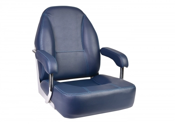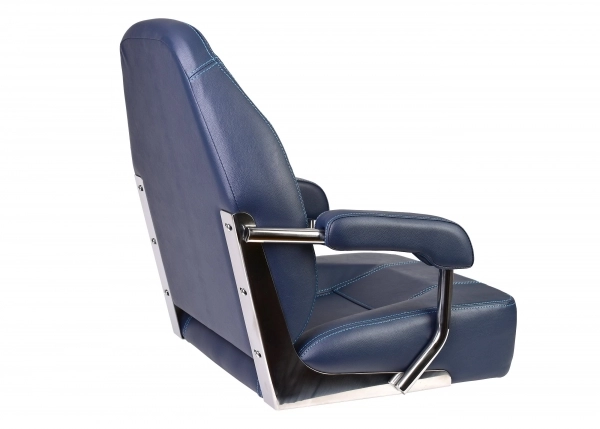 Üstün kaliteli, kolçaklı koltuk. Paslanmaz çelik yapı.
