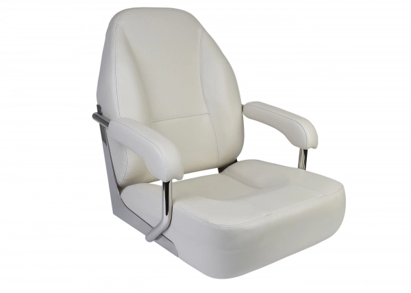 Üstün kaliteli, kolçaklı koltuk. Paslanmaz çelik yapı.