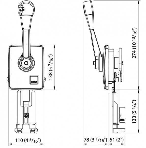 Vetus kumanda kolu. Tekli, yana montaj.