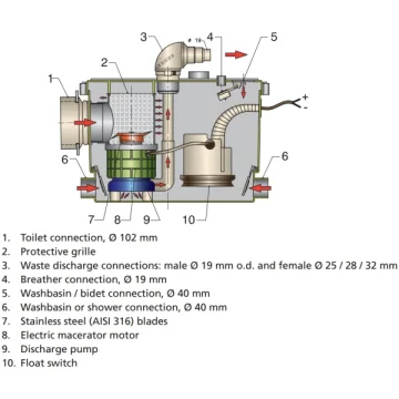 Vetus Sani Processor Vetus Sani Processor. Özellikle konforun ön planda tutulduğu teknelerde standart ev tipi, 102 mm çıkışlı tuvaletlerin kullanımına imkan tanır. Sifon çekildiğinde tankın içindeki flatör vasıtasıyla maceratör çalışır ve 25mm çıkış hortumu vasıtasıyla pis su ve atıklar tanka veya doğrudan dışarı basılır. Üzerinde mevcut girişlere duş ve lavabo tahliyeleri de direk olarakt olarak bağlanabilir. Nominal tüketimi 400W olup, 428x120x362mm ebadındadır.