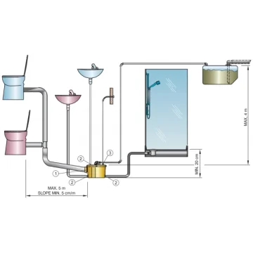Vetus Sani Processor Vetus Sani Processor. Özellikle konforun ön planda tutulduğu teknelerde standart ev tipi, 102 mm çıkışlı tuvaletlerin kullanımına imkan tanır. Sifon çekildiğinde tankın içindeki flatör vasıtasıyla maceratör çalışır ve 25mm çıkış hortumu vasıtasıyla pis su ve atıklar tanka veya doğrudan dışarı basılır. Üzerinde mevcut girişlere duş ve lavabo tahliyeleri de direk olarakt olarak bağlanabilir. Nominal tüketimi 400W olup, 428x120x362mm ebadındadır.