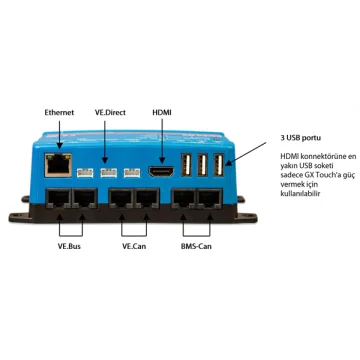 Cerbo GX, tamamen yeni iletişim merkezi, nerede olursanız olun sisteminiz üzerinde her zaman tam kontrole sahip olmanızı sağlar ve sistem performansını en üst seviyeye çıkarır. Victron Uzaktan Bağlantı Yönetimi (VRM) portalımız üzerinden kolayca bağlanın veya ek GX Touch aksesuarı, MFD veya Bluetooth işlevselliğine sahip VictronConnect uygulamamız ile doğrudan erişim sağlayın. GX serisi için yapılan bu son güncelleme, akıllı güç çözümlerini her açıdan yeniden tanımlayarak bağlanabilirliğe ilişkin en iyi özellikleri bir arada sunuyor.