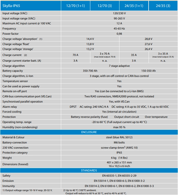 VICTRON ENERGY SKYLLA IP65 CHARGER 24V/35A(1) 120/240V