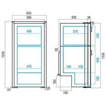 170 litre buzdolabı, 60 litre dondurucu hacmi.