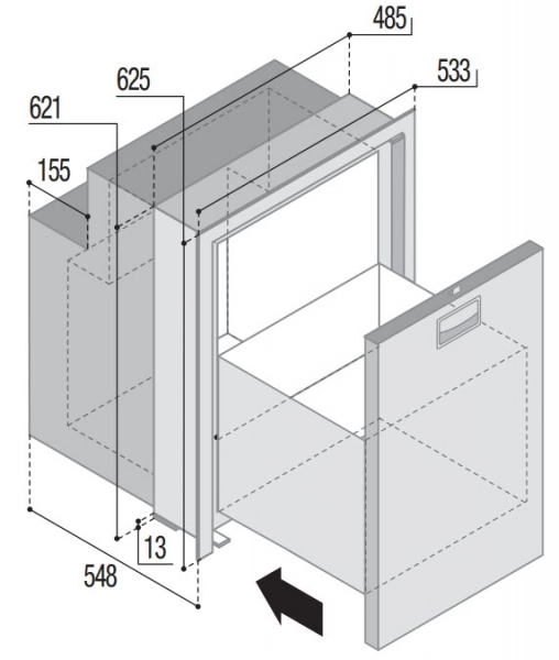 12/24V DC. Çekmeceli Model.  Paslanmaz çelik kapı ve çerçeveli.