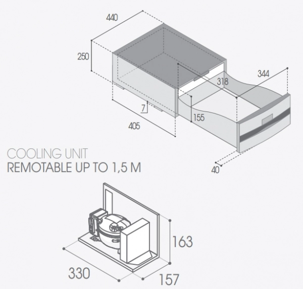 • Kompresör ünitesi dolabın 1,5 metre uzağına kadar konabilir