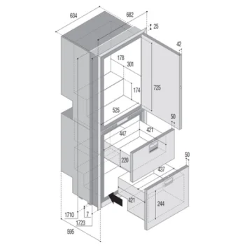Buzdolabı/dondurucu. All in one. Model DRW360A. 12/24V DC. Paslanmaz çelik kapı ve çerçeveli.