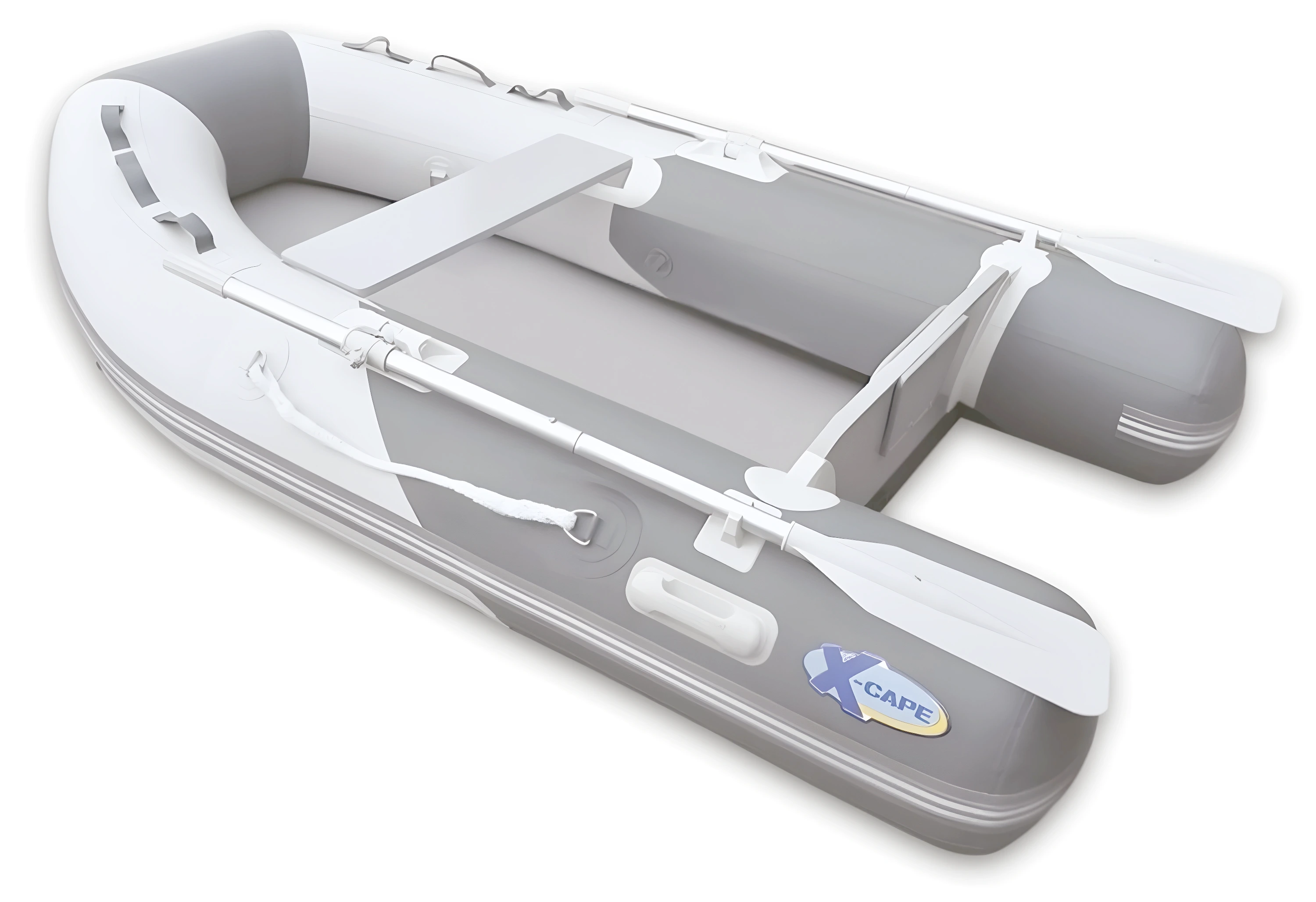 X-Cape şişme tabanlı bot. X-Cape şişme tabanlı bot. X-Cape özellikle hafi f ve dayanıklı olarak tasarlanmış olup, sert kumsallara indirmekten, arabanın içinde veya dışında, karavanlarda, teknelerde ve römorklarda indirip bindirmeler gibi günlük kullanım koşullarına dirençlidir. Her iki yüzü PVC ile kaplı 0.9 mm, 1000 denye polyester kumaştan mamul modern yüzdürücü tüpe sahiptir. Şişme taban binlerce polyester ipliğin çaprazlamasına birbirine geçmesi şeklinde akıllıca tasarlanmıştır. Yüksek basınçta şişirilerek, geleneksel ahşap tabanlı botlara göre daha hafi f ve rahat hem de onlar kadar dayanıklı ve sert olduğunu kanıtlamıştır. Küçük boyu sayesinde kolayca taşınabilir ve dar yerlerde saklanabilir.