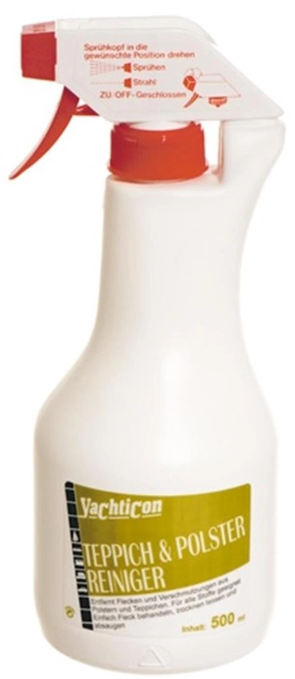 YACHTICON Carpet & Cushion Cleaner 500 ml. Halı ve minderlerin yüzeyindeki kir ve lekeleri temizler. Tüm kumaşlarda güvenle kullanılabilir. Kullanımı kolaydır; lekeli yüzeye dökülüp kuruması beklenir ve silinir.