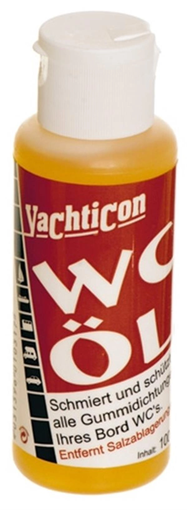 YACHTICON Toilet oil 100 ml. Tekne tuvaletinizin tüm lastik aksamını korur, kayganlık sağlar. Tuzlanmayı giderir. Pompa silindirinin içini yağlar, valfların tıkanmasını önler. Pompa piston milini yağlar. Tabii değildir, çevreye zarar vermez. Portatif tuvaletlerde de kullanılır.